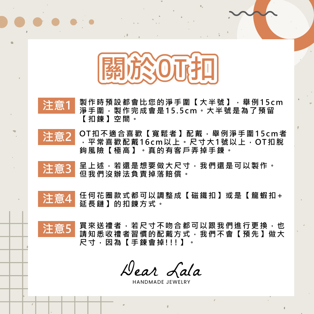 👉尺寸大於17cm還是想做成OT扣款式,請私訊小編獲得報價(需要補珠)